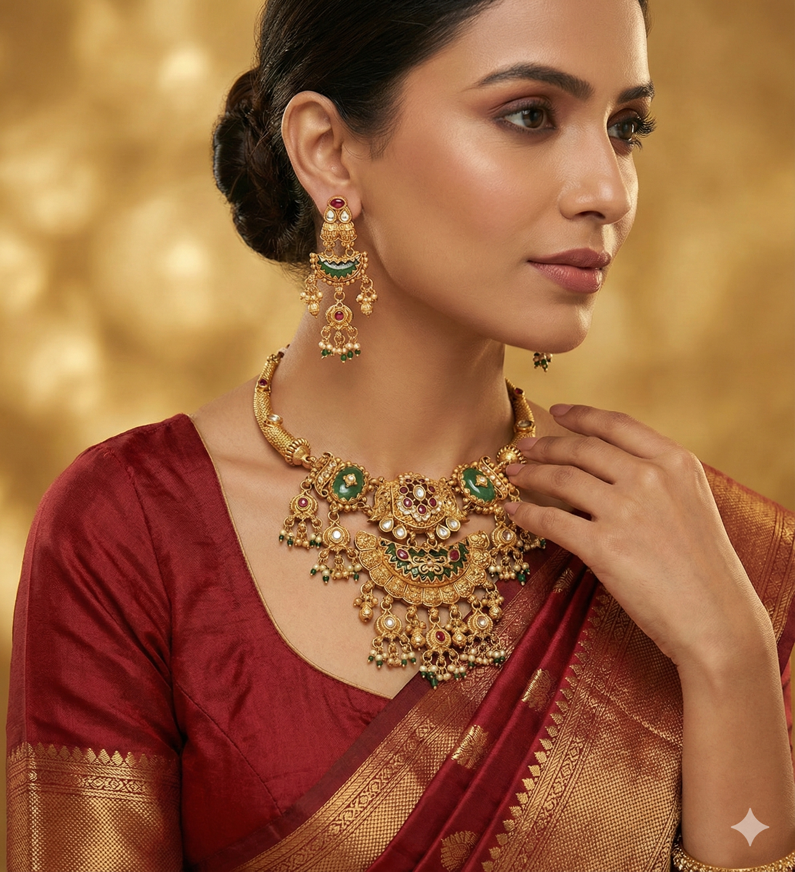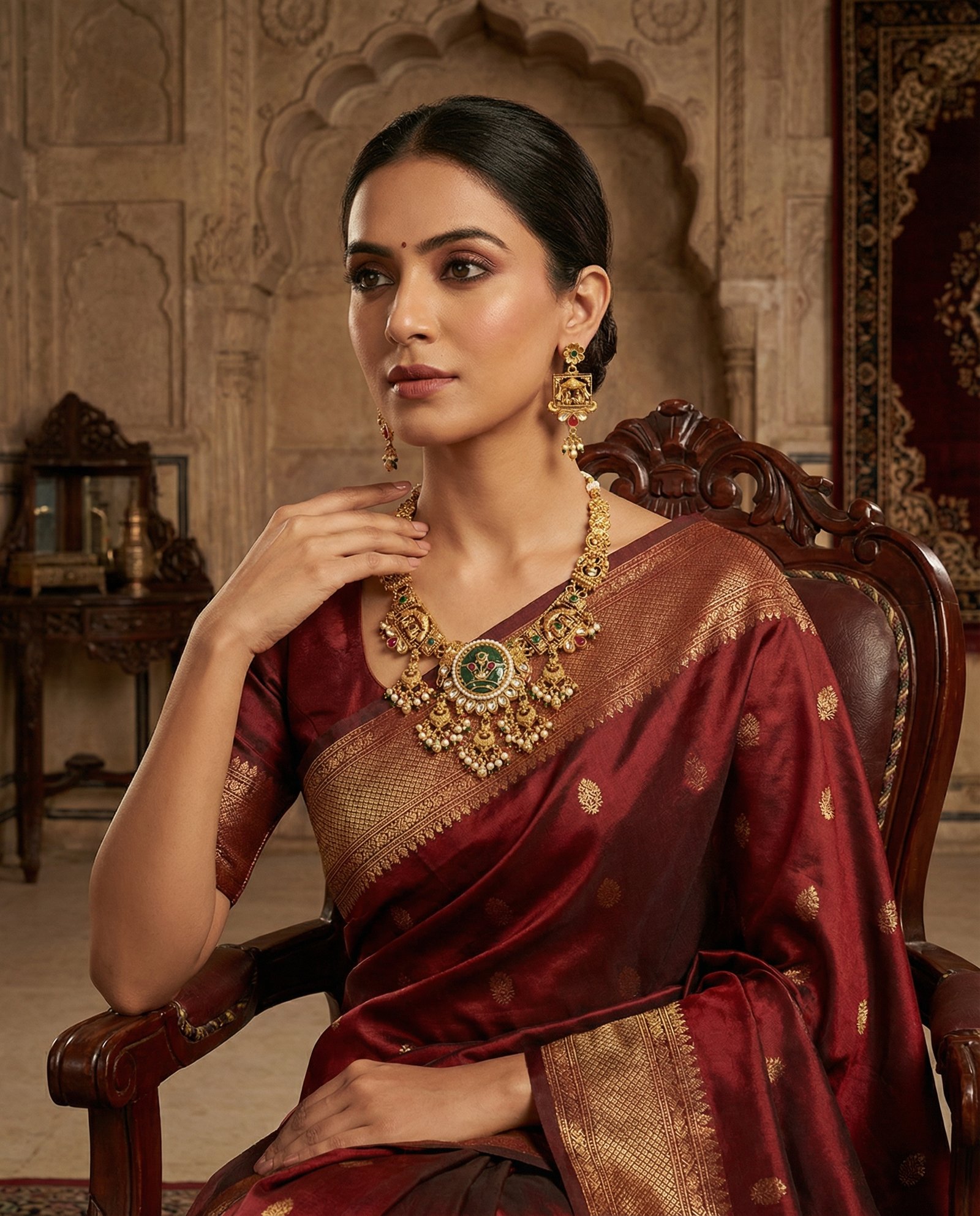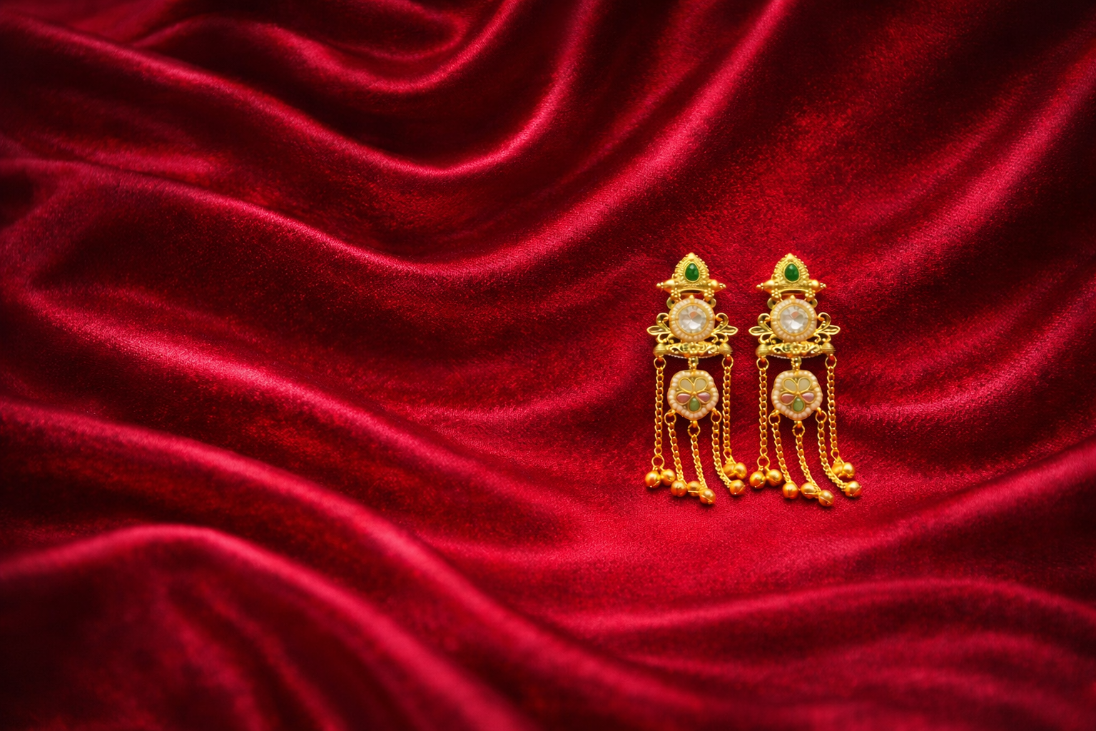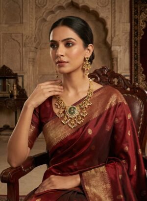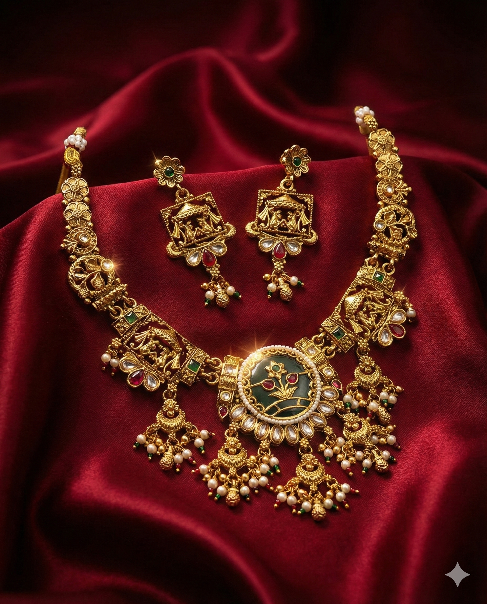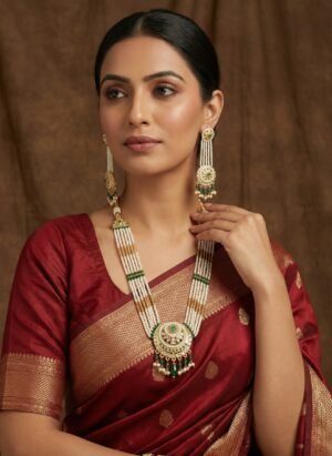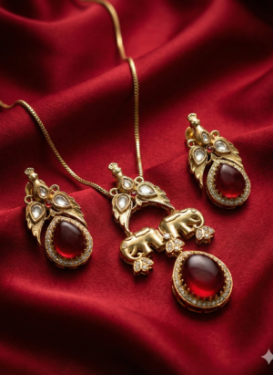 ₹1,199.00Current price is: ₹1,199.00.Royal Ruby-Red Kundan Pendant Necklace Set