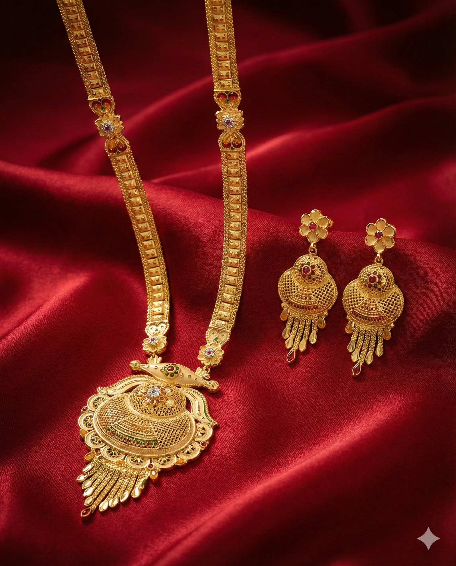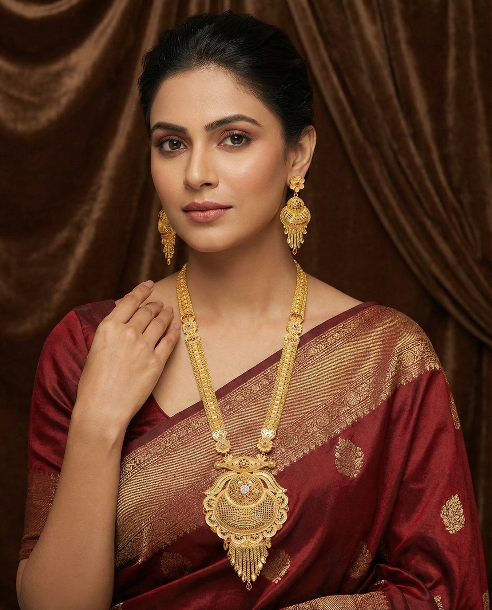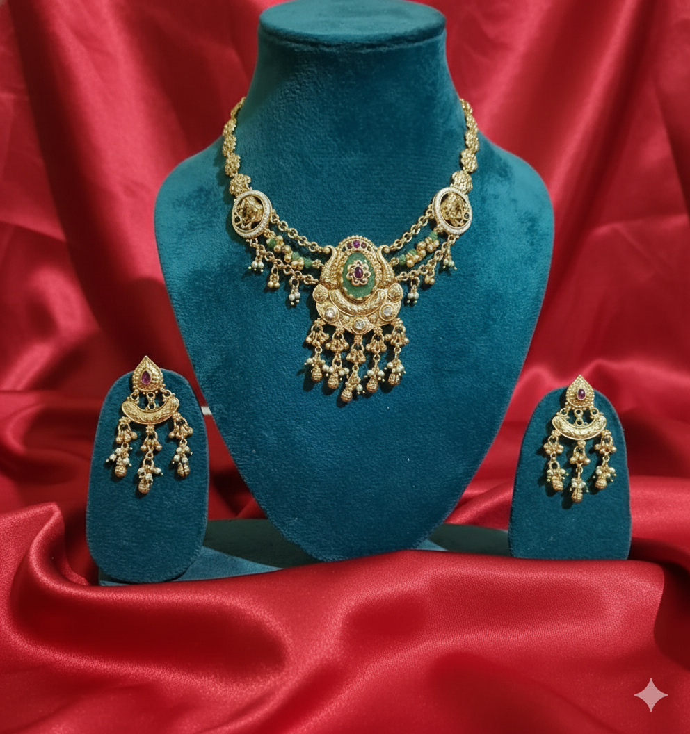 ₹899.00Current price is: ₹899.00.Heritage Antique Gold Long Pendant Necklace Set
