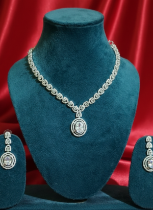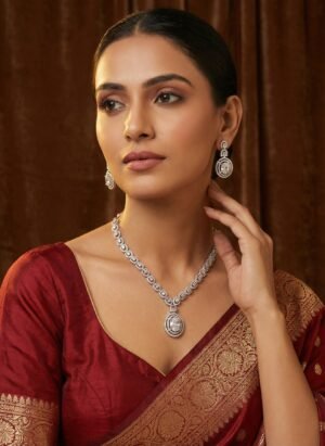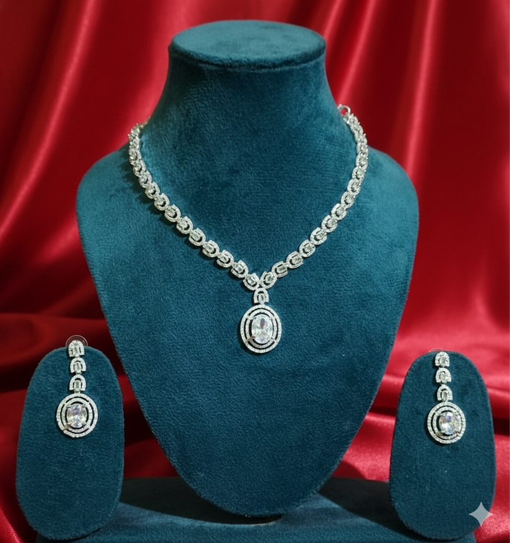 ₹999.00Current price is: ₹999.00.Elegant American Diamond Necklace Set with Matching Earrings