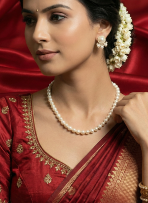 ₹999.00Current price is: ₹999.00.Classic Pearl Necklace Set with Elegant Pearl Stud Earrings