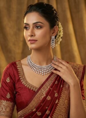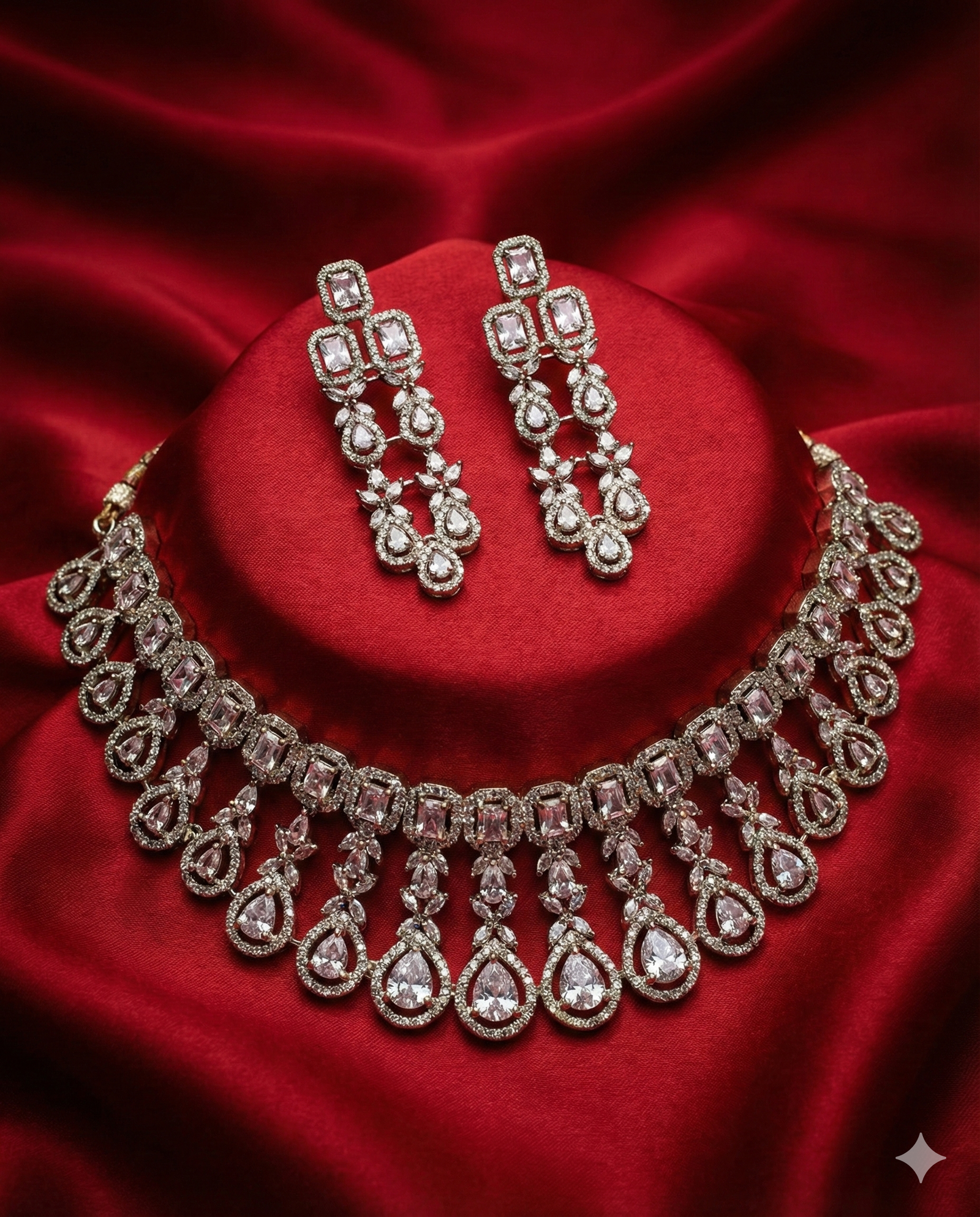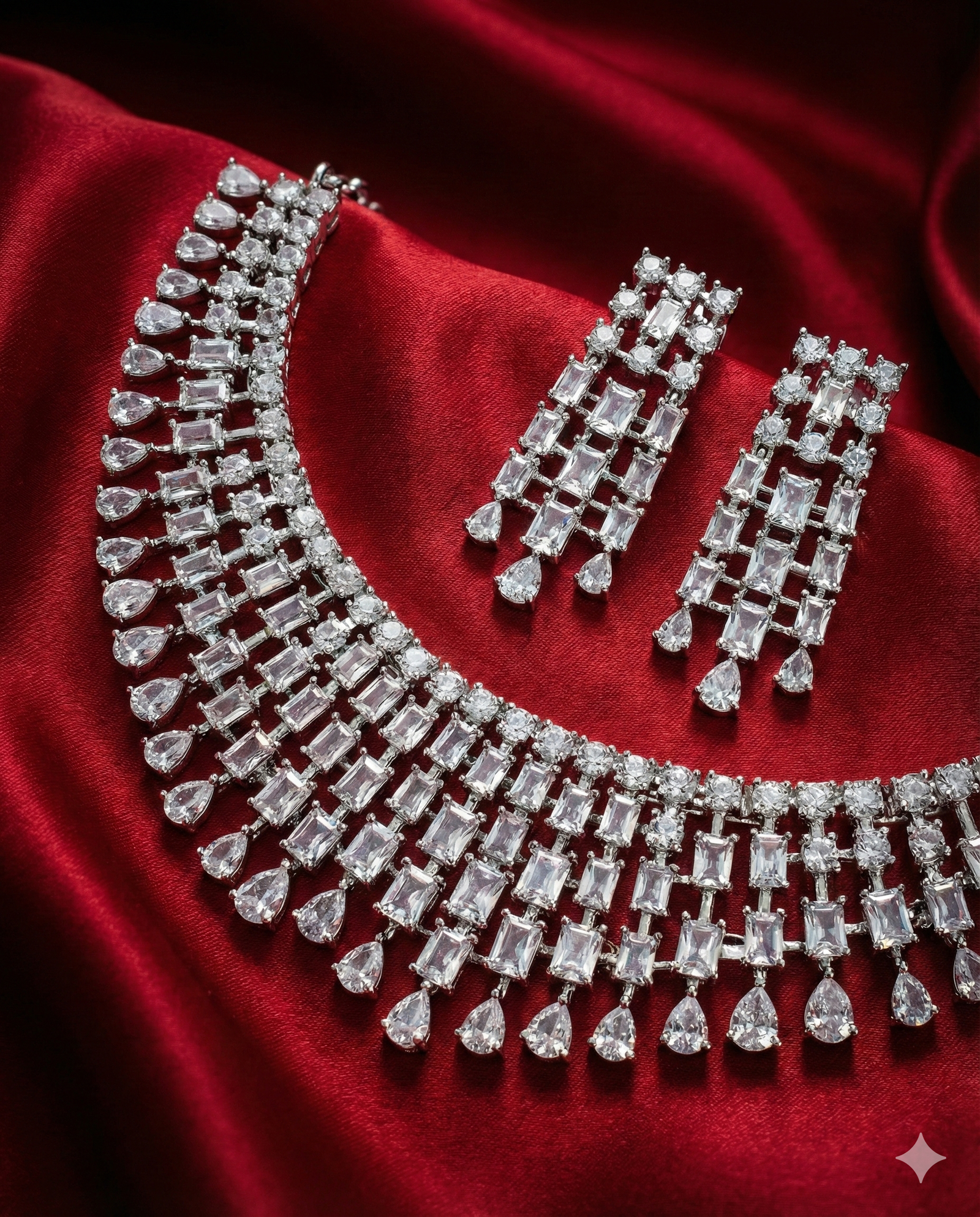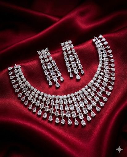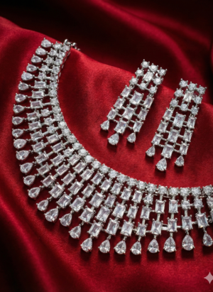 ₹7,999.00Current price is: ₹7,999.00.Luxury Diamond-Look Crystal Waterfall Necklace Set