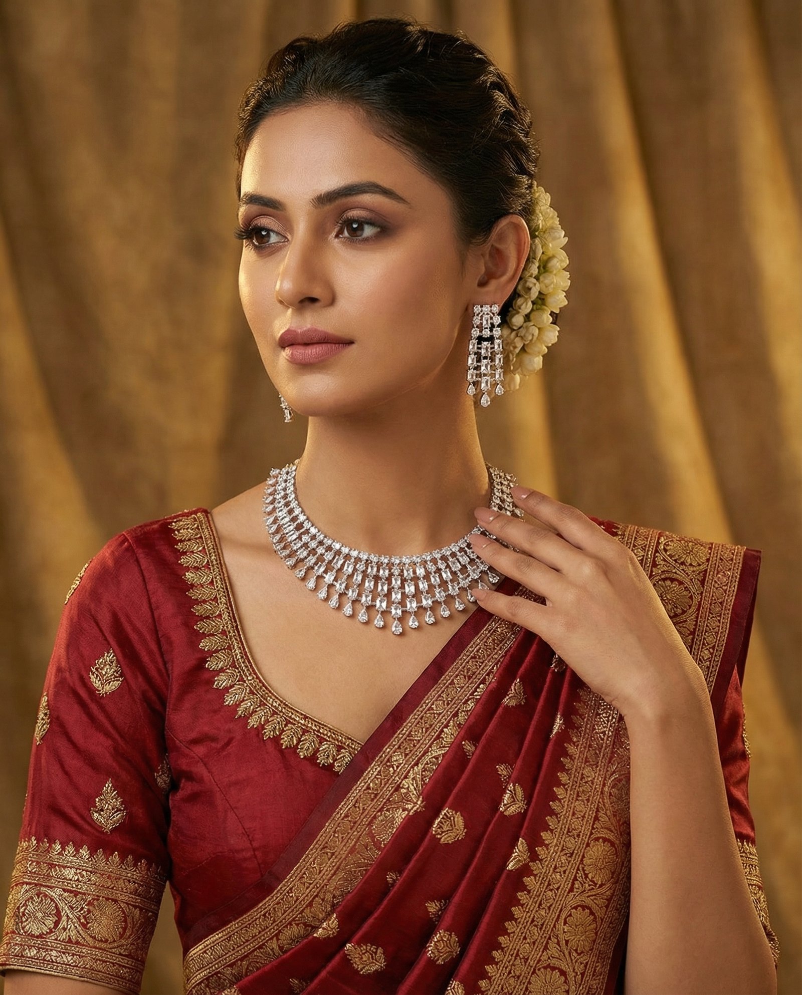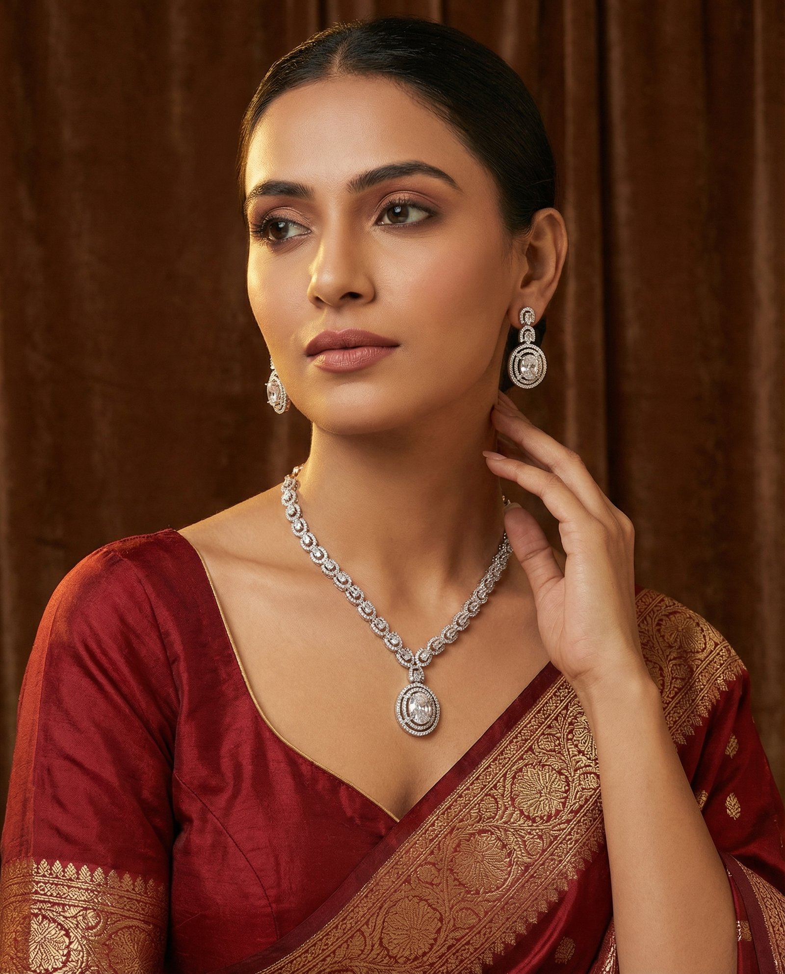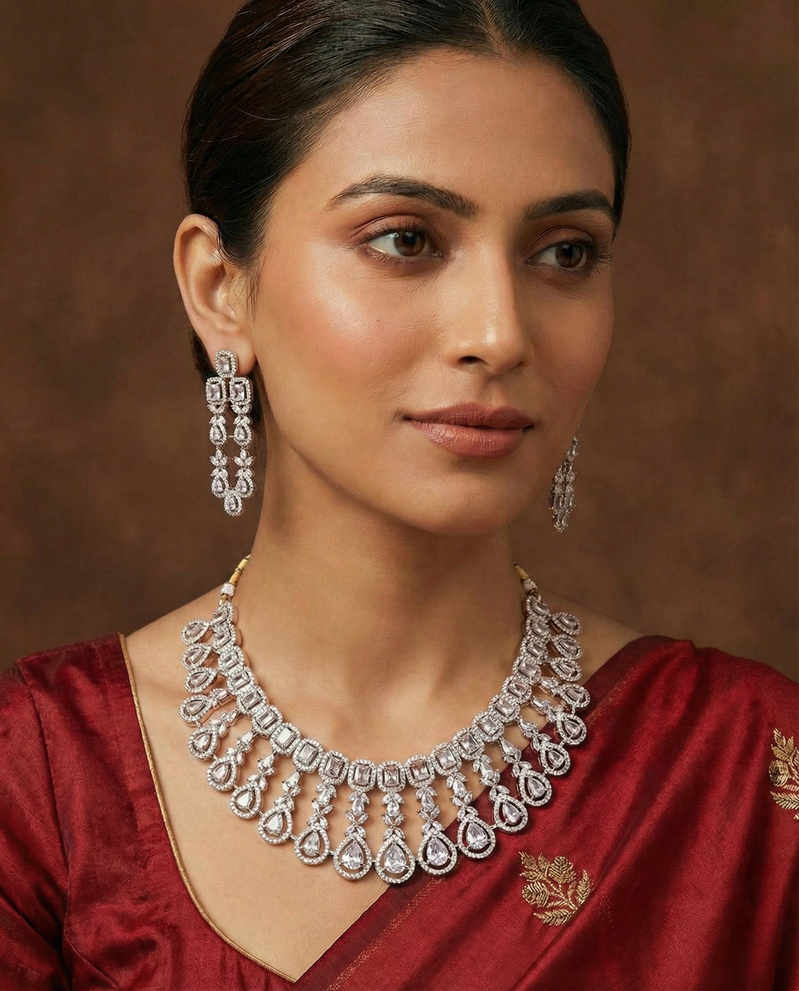 ₹7,999.00Current price is: ₹7,999.00.Luxury Diamond-Look Crystal Waterfall Necklace Set