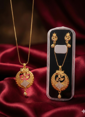 ₹1,299.00Current price is: ₹1,299.00.Elegant Gold-Tone Pendant Necklace Set with Matching Earrings
