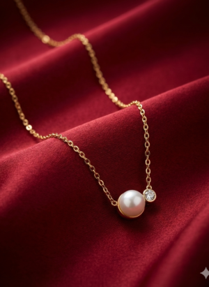 ₹499.00Current price is: ₹499.00.Minimalist Gold-Tone Pearl & Crystal Pendant Necklace