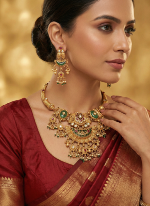 ₹1,599.00Current price is: ₹1,599.00.Grand Antique Gold Temple Choker Necklace Set