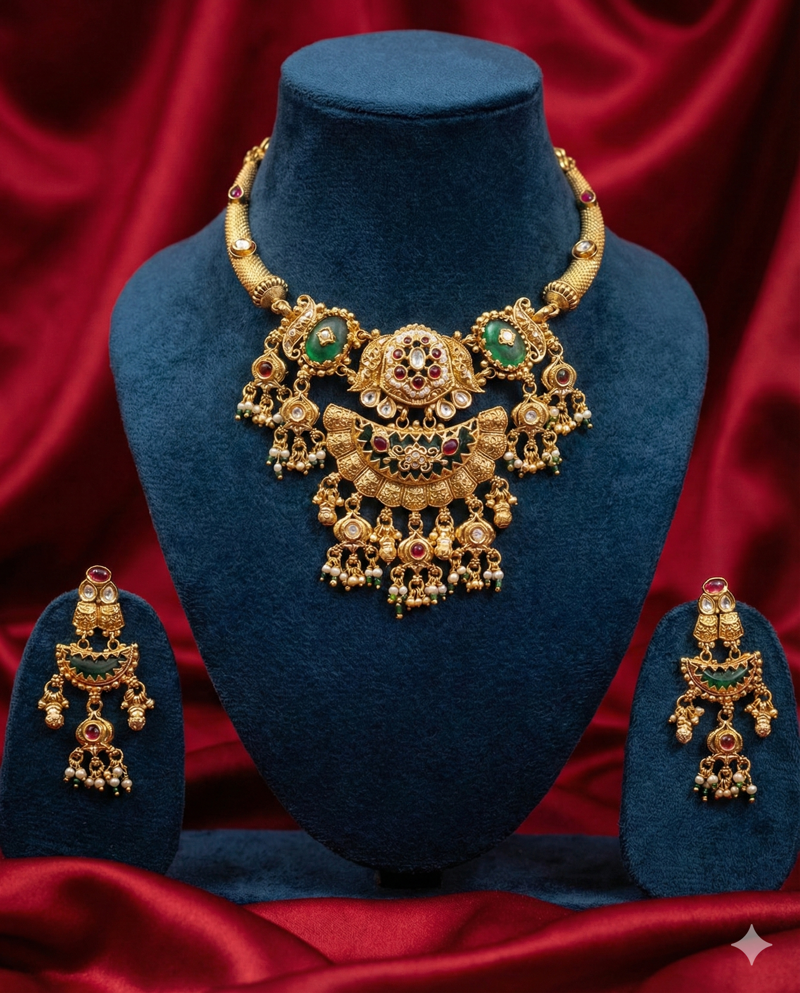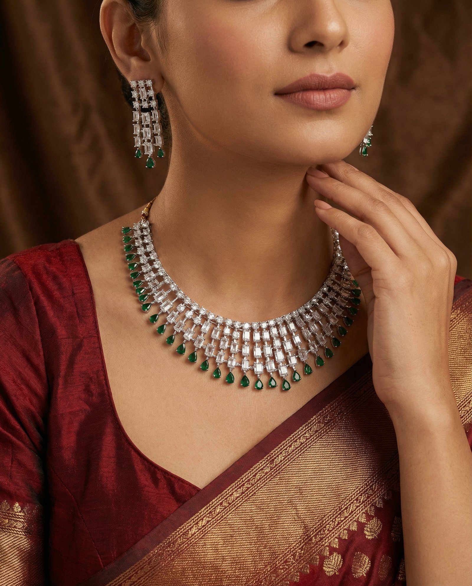 ₹1,999.00Current price is: ₹1,999.00.Emerald Royale Bridal Jewellery Set