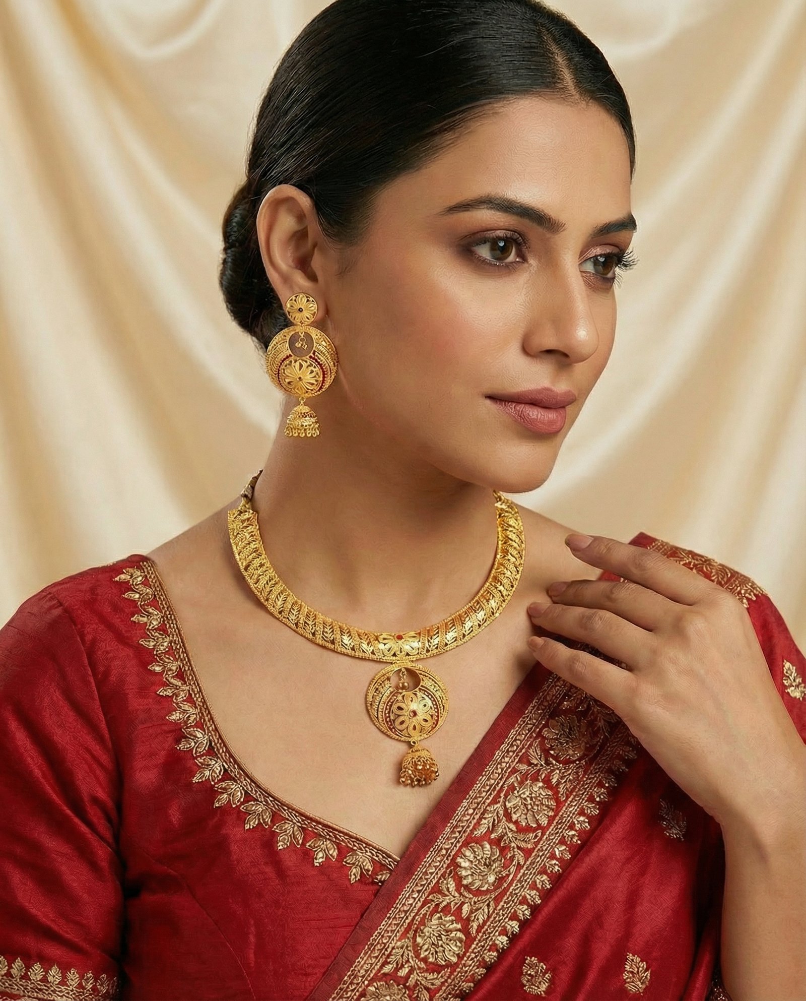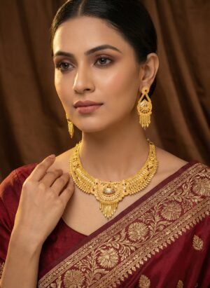 Traditional Gold-Finish Bridal Choker Necklace Set with Earrings