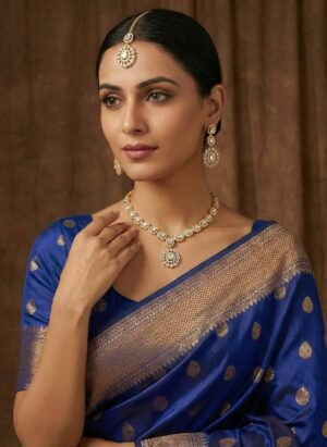 ₹1,299.00Current price is: ₹1,299.00.Traditional Gold-Finish Kundan Necklace Set with Matching Earrings