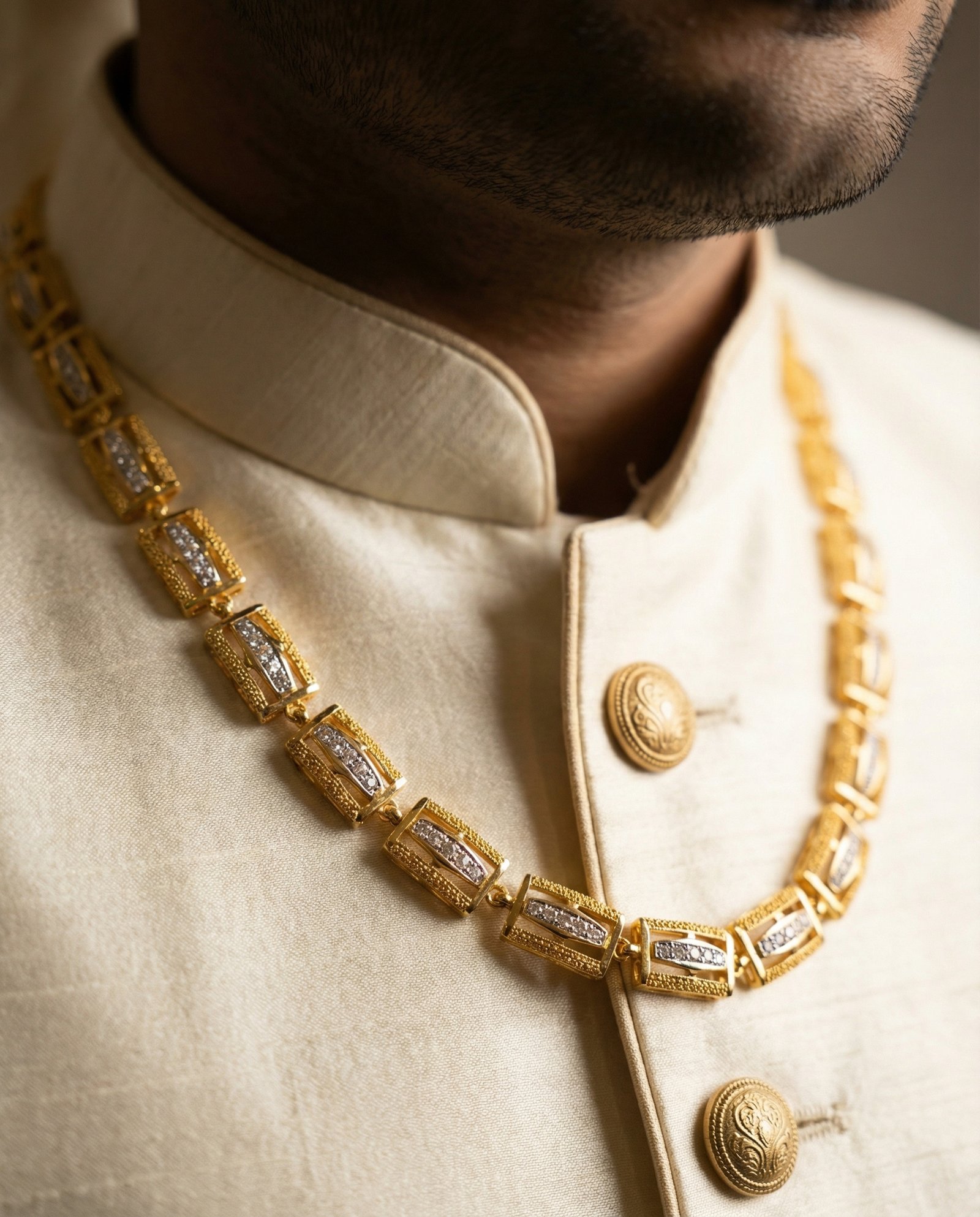 Luxury Gold Finish Stone Studded Designer Chain for Men