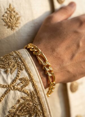 Designer Gold Finish Engraved Link Bracelet for Men