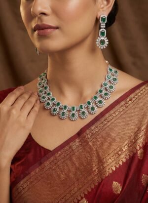 Emerald Green American Diamond Choker Necklace Set with Earrings