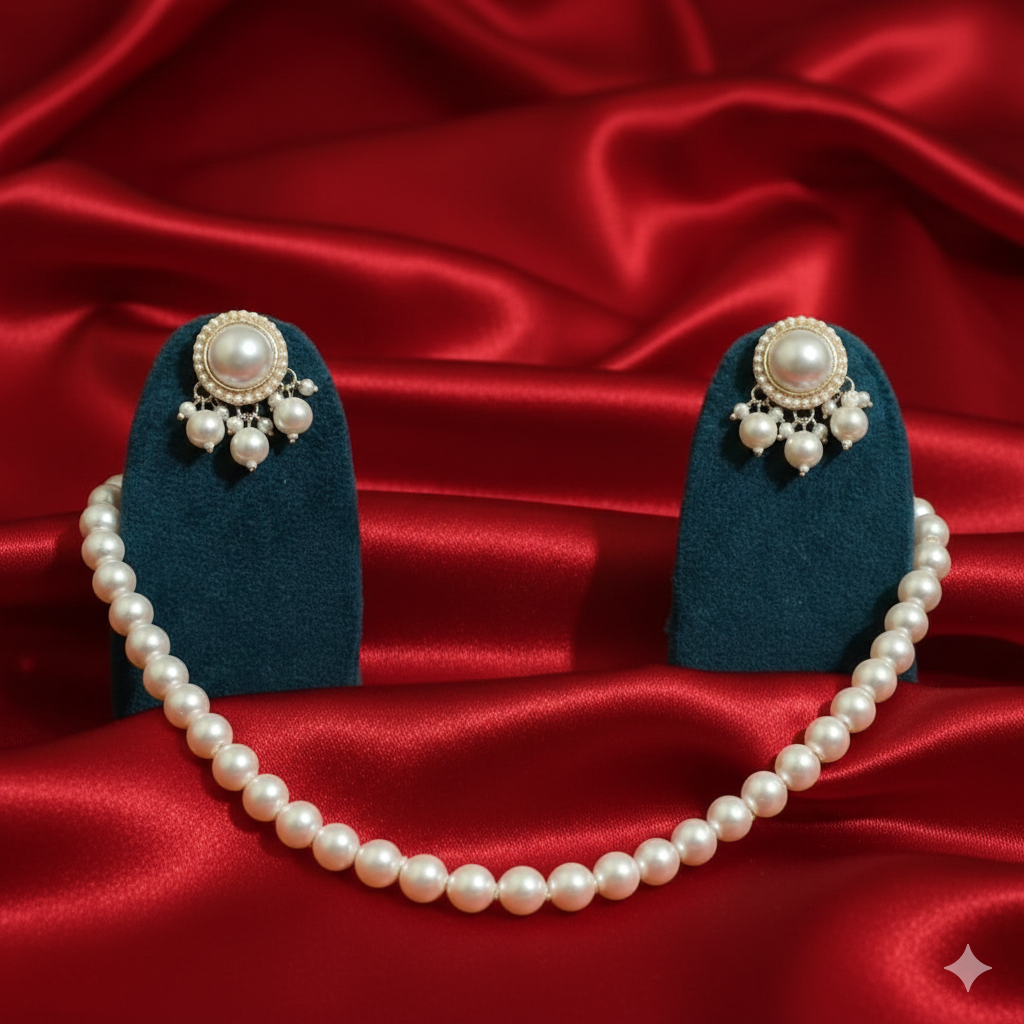 Timeless and elegant, this classic pearl necklace set features a graceful strand of lustrous pearls paired with matching pearl stud earrings. Designed for understated sophistication, the set complements both traditional and modern outfits, making it a versatile addition to any jewelry collection. Perfect for everyday elegance, formal occasions, and thoughtful gifting.