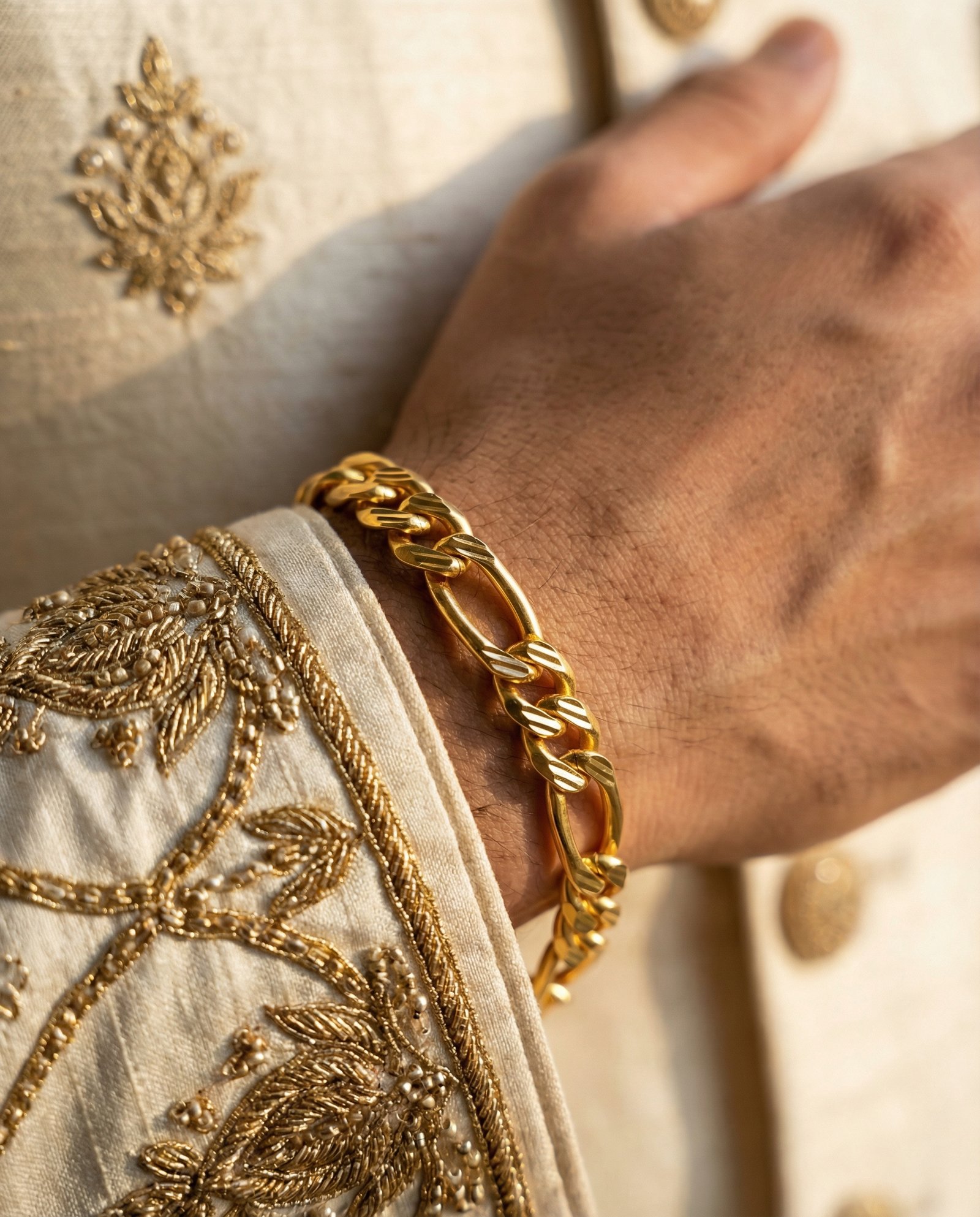 Upgrade your accessory collection with this Premium Gold Finish Mixed Link Bracelet for Men, crafted for those who prefer a sleek yet eye-catching design. The combination of oval and curb-style links creates a modern and stylish appearance that complements any outfit. Finished with a rich gold polish, this bracelet offers a refined shine and comfortable fit for all-day wear. Whether paired with casual attire or festive outfits, it adds elegance, confidence, and a subtle touch of luxury.